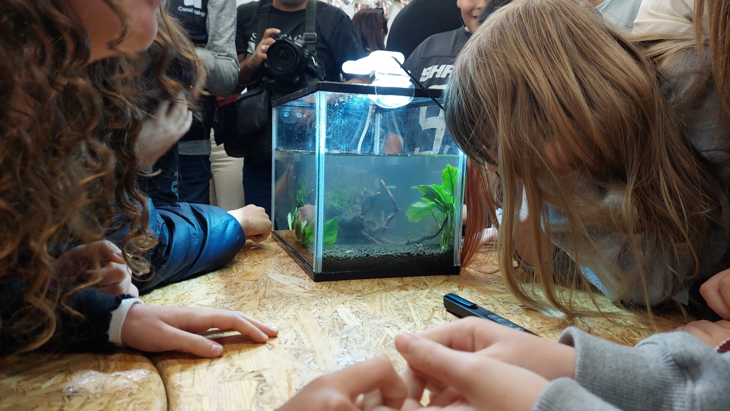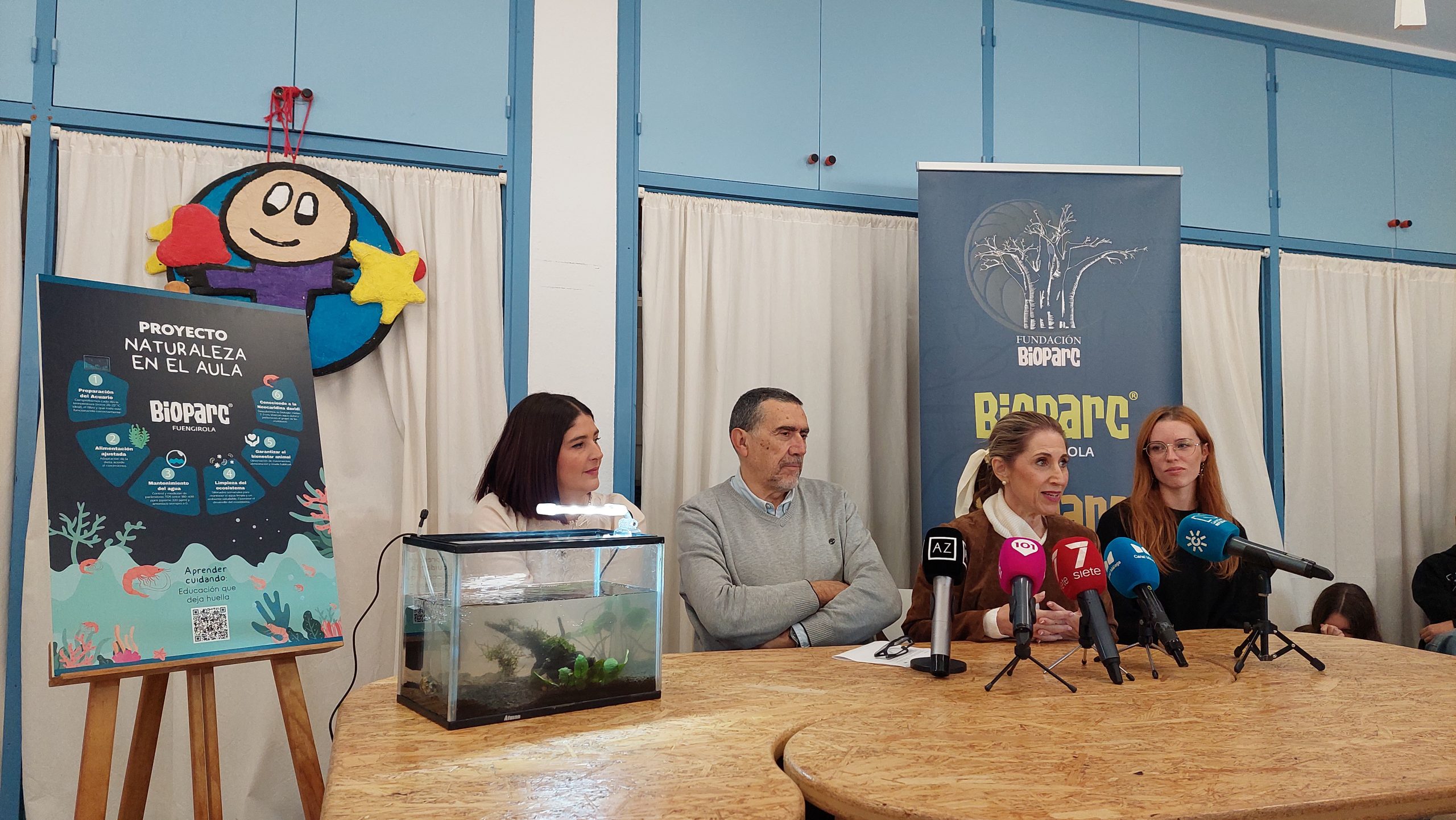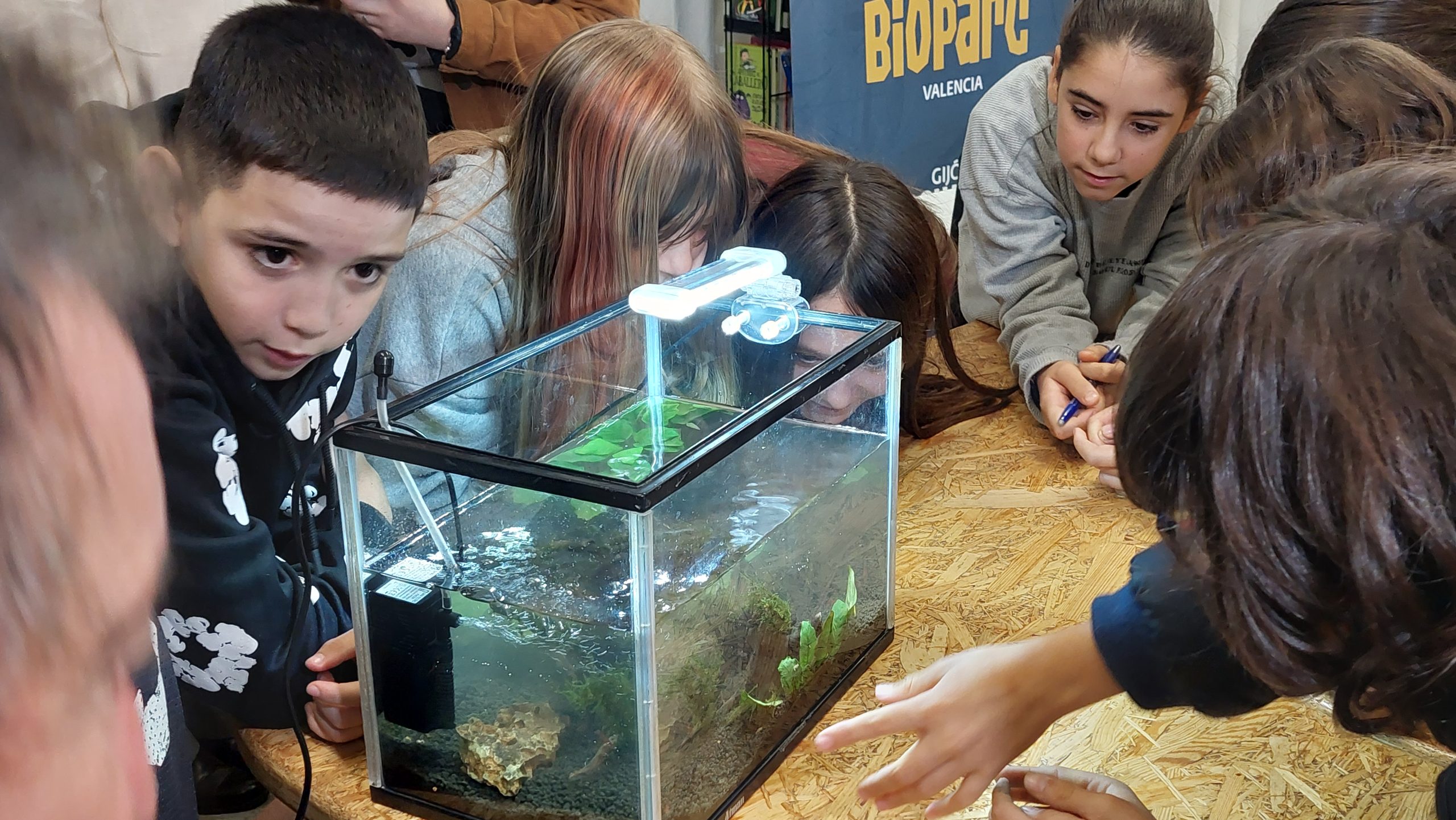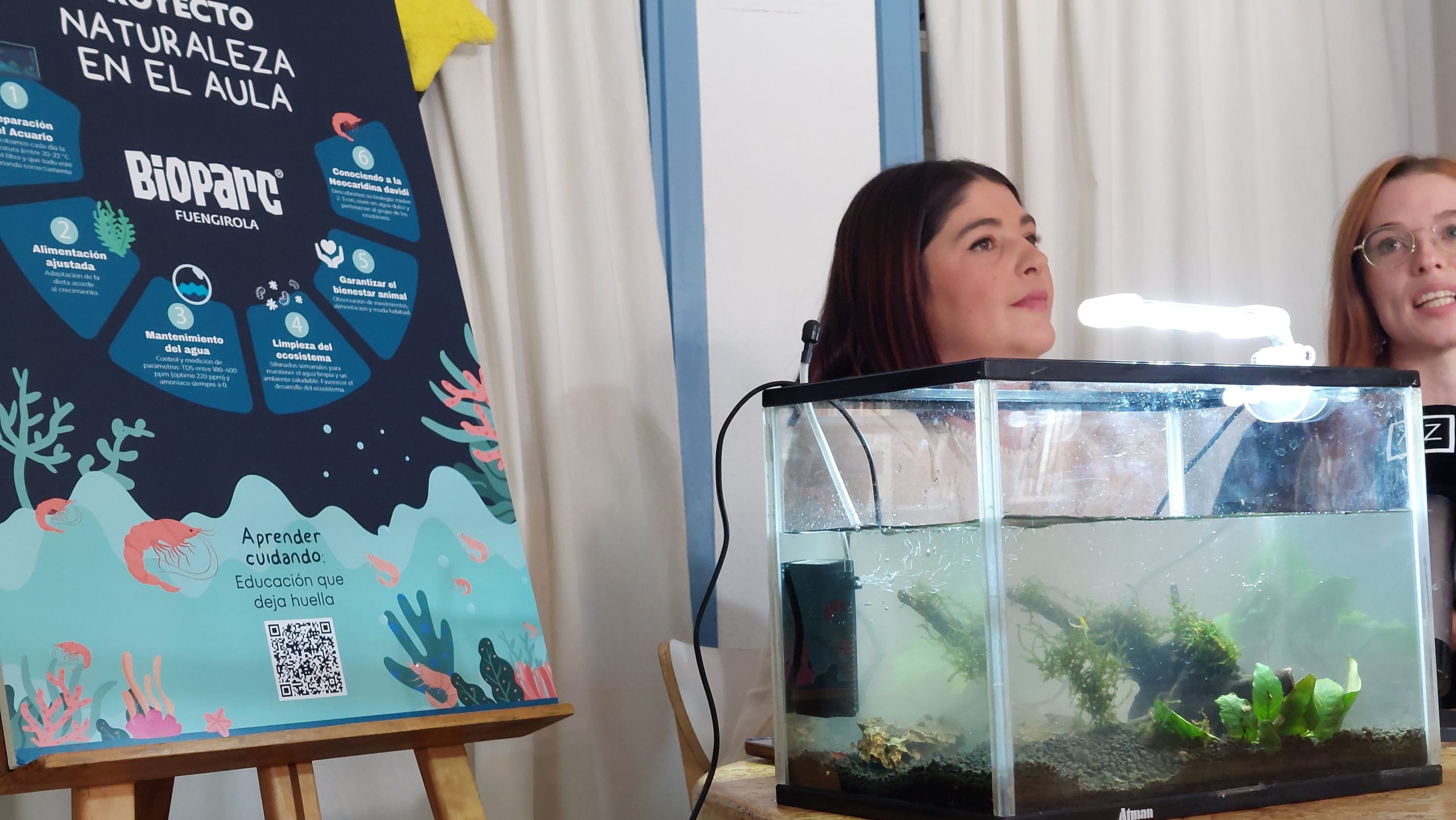 La iniciativa propone instalar en las aulas pequeños acuarios de agua dulce que albergan un ecosistema real compuesto por gambas neocaridinas, plantas y algas, convirtiendo cada clase en un espacio vivo de observación, ciencia y aprendizaje activo a través de la naturaleza.