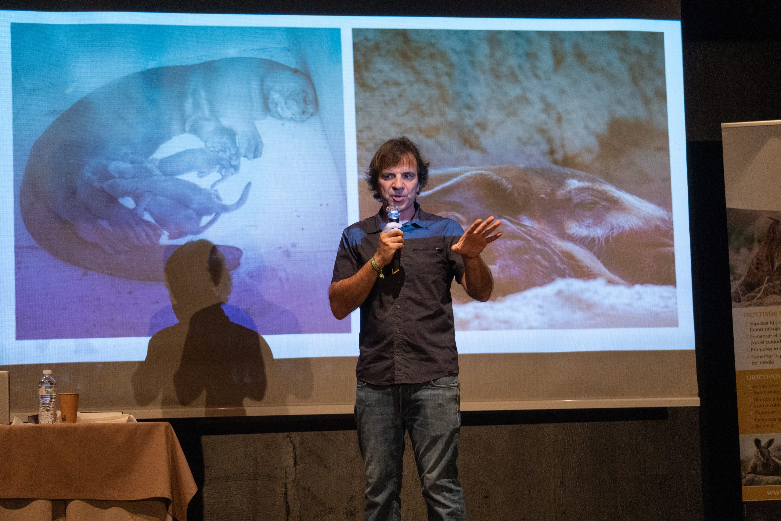 Entre las ponencias del equipo de Bioparc Fuengirola, la exposición de Javier Vicente, sobre la reproducción de calaos del sudeste asiático, unas aves tan fascinantes como exigentes a la hora de criar. En Bioparc, las hembras se encierran en troncos que sellan desde dentro, dejando solo una pequeña rendija por donde el macho las alimenta durante semanas. Gracias al trabajo de los cuidadores, el parque ha logrado reproducir con éxito varias especies amenazadas, entre ellas el calao gorginegro y el de Papúa, un logro que solo se consigue con paciencia y profundo conocimiento del comportamiento animal.