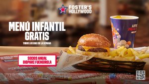 Met pas B! van BIOPARC Fuengirola, geniet van een exclusieve korting bij Foster Hollywood. Voor elke volwassene die een drankje en een hoofdgerecht nuttigt, KIND GRATIS.